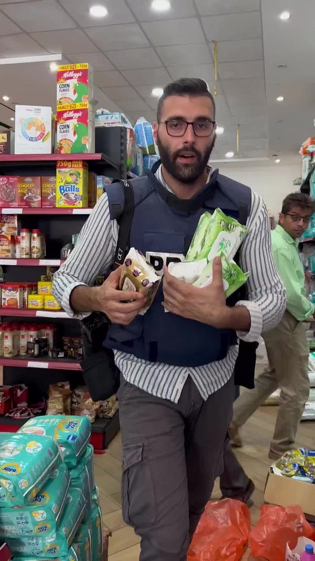 →In a rare glimpse of the actual state of stockpiles in Gaza, journalist Motaz Azaiza offers a tour of the “bare shelves” in Gaza stores, courtesy of @imshin: